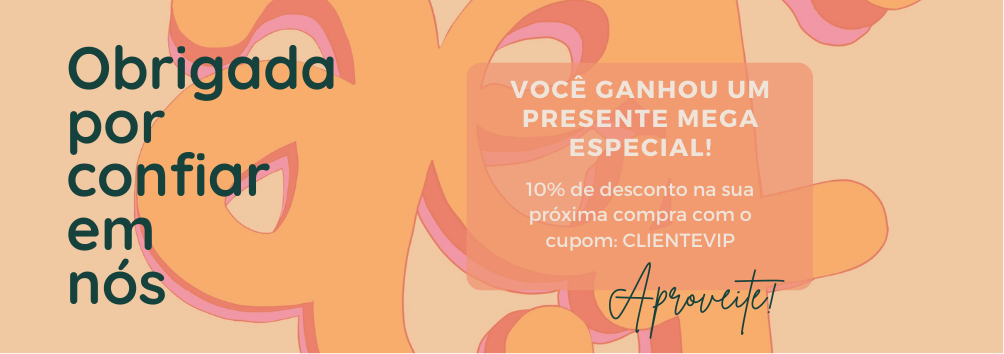 Obrigada por apreciar e valorizar o nosso trabalho, tudo aqui é pensado com muito amor e carinho para que você possa se sentir unica e exclusiva! Aproveite o seu presente adquirindo uma nova peça da nossa loja.