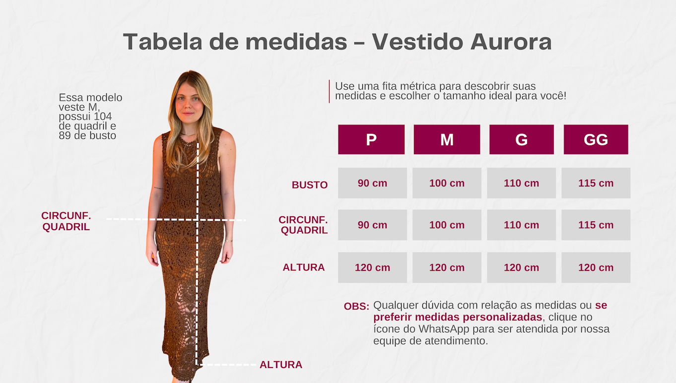 O Vestido Aurora é uma peça exclusiva, confeccionada totalmente à mão em crochê com linha de algodão de alta qualidade. O ponto usado imita renda, uma tendência que está super em alta e seu comprimento trás sofisticação e modernidade.